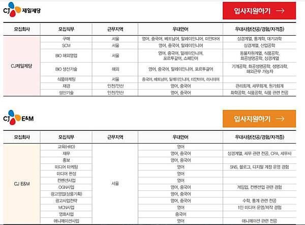 例如CJ集團,就有專門在找國際人才(글로벌인재)的徵才活動